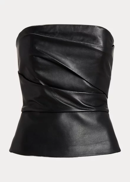Confectionné en Italie dans un cuir d’agneau nappa léger et souple, le remarquable modèle Schofield utilise un cuir plus épais au niveau de l’ourlet associé à une couture travaillée à la taille pour créer une silhouette à basque subtile. Rehaussée de fronces près du corps et d’une construction bustier, cette pièce est parachevée d’une tirette de zip en agneau ornée du monogramme empilé de Ralph Lauren.