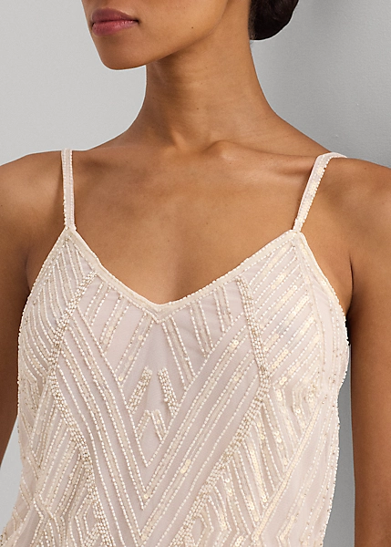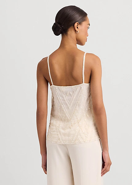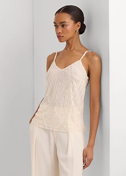 Arborant une conception moderne à deux bretelles, ce caraco en tulle aérien est orné de perles et de sequins sur l’ensemble pour une allure glamour.