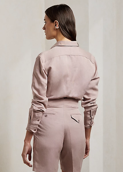 Confectionnée en Italie, cette version de la chemise Adrien est inspirée des vêtements hommes classiques tout en conservant un look résolument féminin. Rehaussé de boutons en nacre véritable, ce modèle est soigneusement tissé dans un tissu de lin mélangé frais et compact spécialement sélectionné pour sa douceur au toucher.