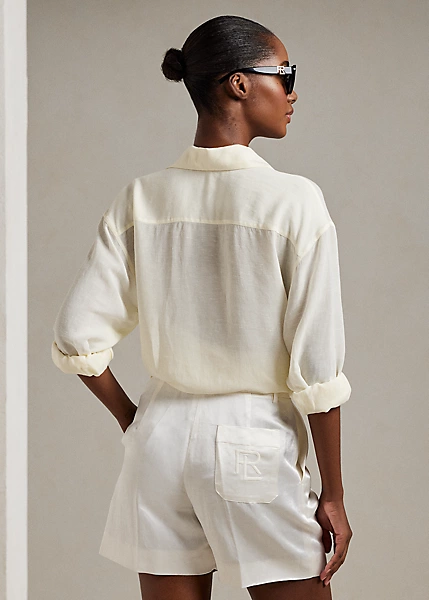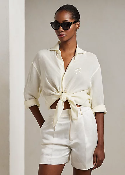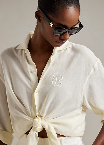 Silhouette de la nouvelle saison, la chemise Cagney confère un style nonchalant au modèle classique avec une confection en voile de lin ultra-léger, une coupe droite décontractée, des emmanchures basses et des fentes sur les coutures latérales qui permettent de la porter à l’extérieur ou nouée devant. Le monogramme superposé emblématique de Ralph Lauren est brodé sur la poitrine pour une touche distinctive.