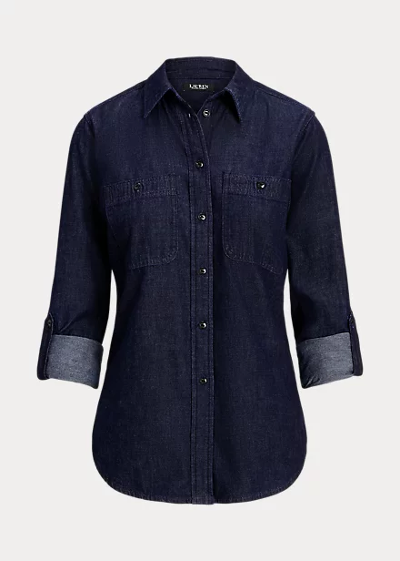 Cette chemise incontournable à la silhouette décontractée confortable est revisitée en denim délavé foncé avec des manches à patte d’enroulement. Les boutons œil-de-poisson avec finition en laiton vieilli apportent une touche raffinée.