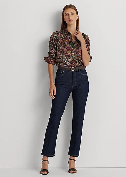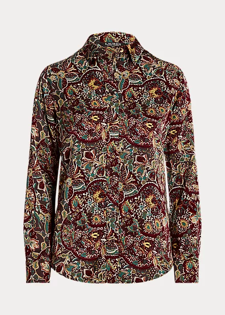 Cette saison, Lauren revisite la chemise traditionnelle avec son emblématique modèle à manches longues rehaussé d’une confection en charmeuse de satin brillante et du motif fleuri de la saison, inspiré des techniques d’impression à la planche traditionnelles. Les boutons distinctifs confèrent une finition Lauren Ralph Lauren emblématique.
