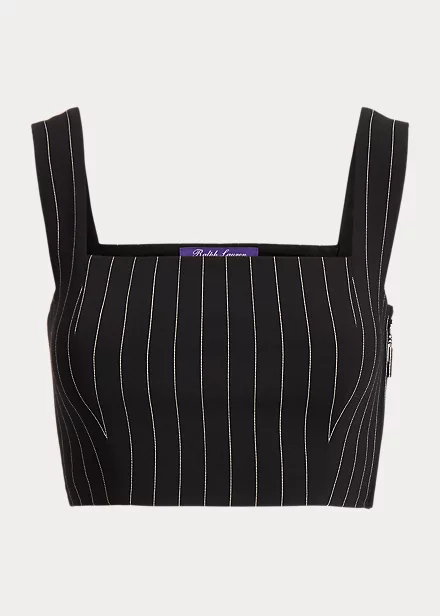 Le modèle Cenza revisite les pièces classiques du vestiaire masculin pour la femme moderne. Confectionné avec des pinces et de larges bretelles, ce haut court de style bustier est tissé avec des fils de laine peignée ultra-fins pour un motif milleraies intemporel créé en exclusivité pour la collection Pré-Automne 2023.