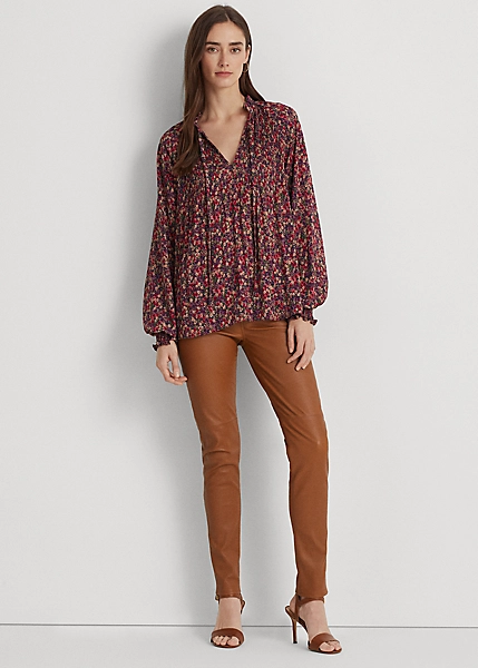 Le plissage soleil, les manches effet blousant et la bordure volantée accentuent l’élégance de ce chemisier à col lavallière, revisité avec le charmant motif fleuri de la saison. Doté d’une silhouette aérienne décontractée, ce modèle est confectionné en georgette légère pour obtenir un drapé fluide.