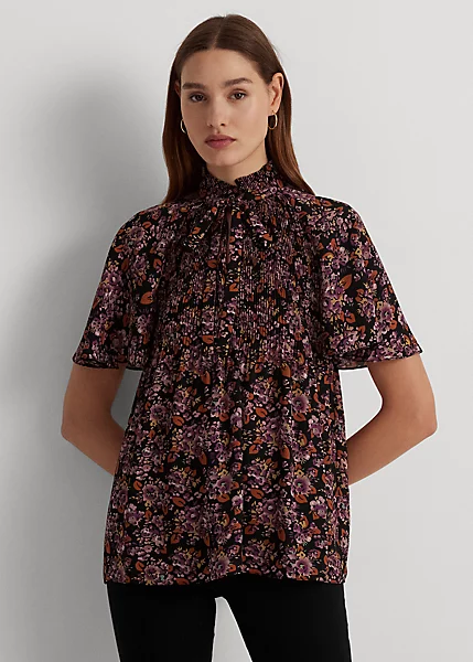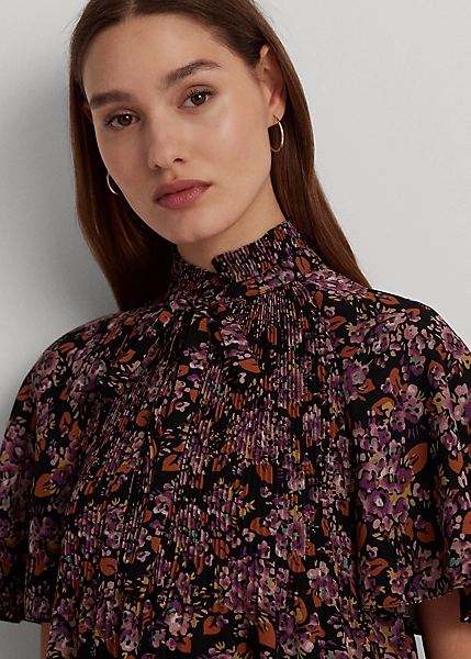 Doté d’une silhouette aérienne et décontractée, ce chemisier à col lavallière se caractérise par des mancherons volantés et un plissage soleil. Paré du motif fleuri romantique de la saison, ce modèle est confectionné en georgette aérienne pour créer un drapé gracieux.