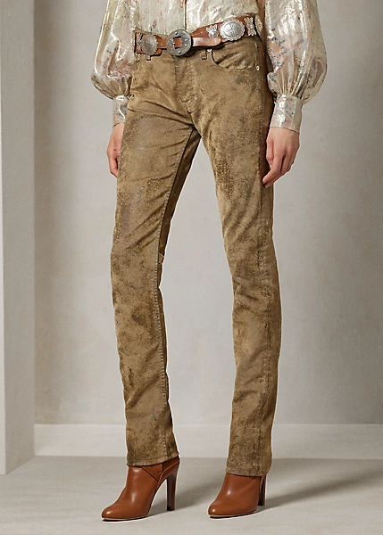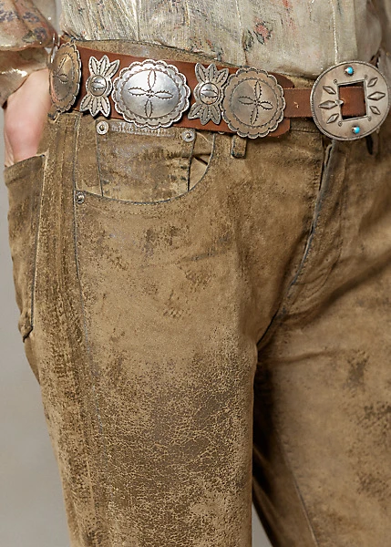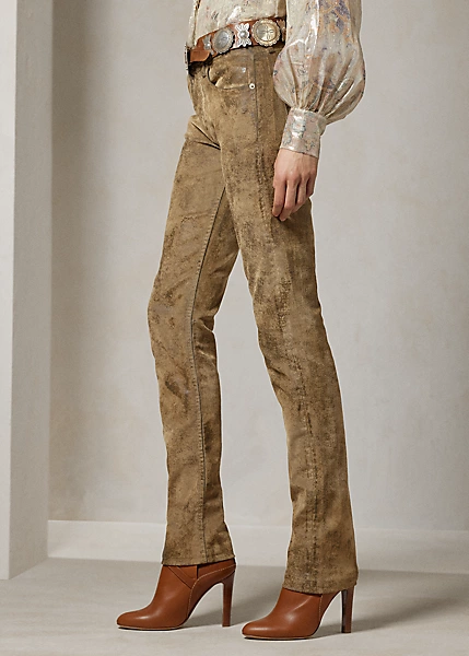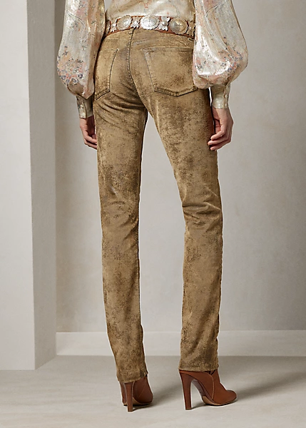 De fabrication italienne, ce jean 7/8 droit 750 arbore une taille mi-haute et une braguette Ă boutons. Cette version est confectionnĂ©e en denim floquĂ© stretch soigneusement rehaussĂ© d’un motif irrĂ©gulier et d’un traitement mĂ©tallisĂ© transparent pour obtenir un aspect suĂ©dĂ© d’inspiration vintage.