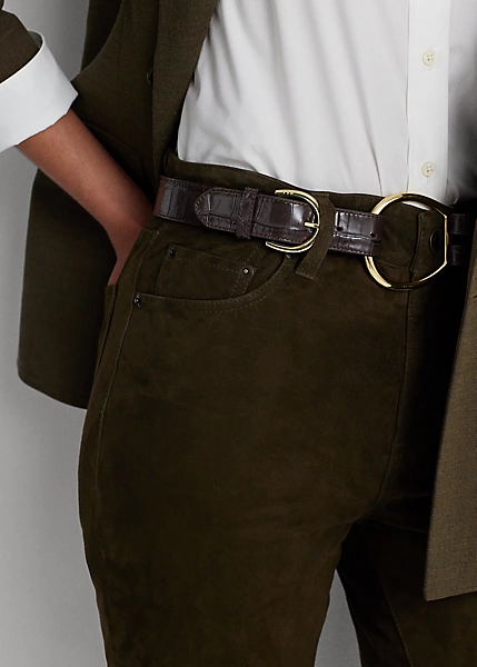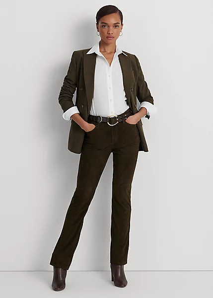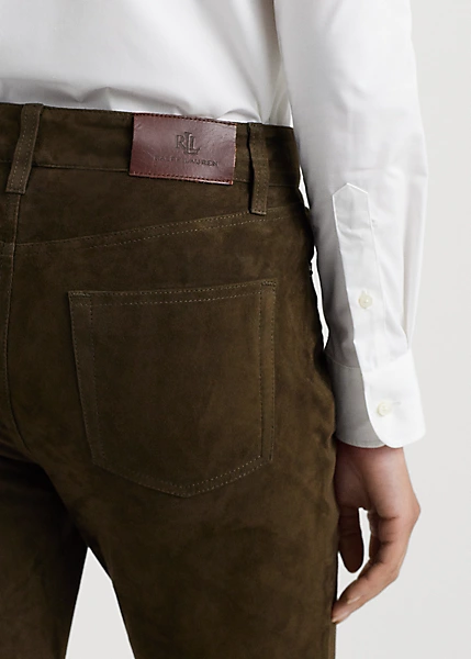 Soigneusement confectionné en chamois, ce somptueux pantalon arbore une taille haute et une silhouette bootcut pour allonger la jambe.