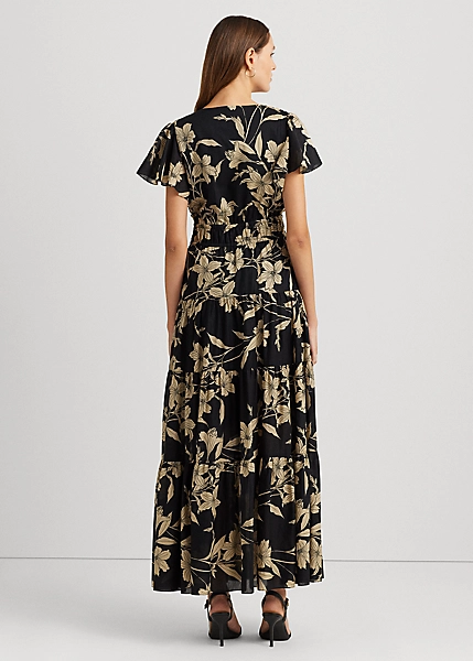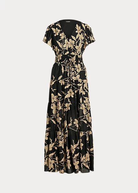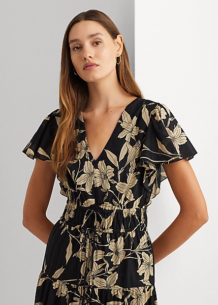 Un voile de coton aĂ©rien et une jupe gitane confèrent un mouvement naturel Ă cette maxi robe, tandis qu’une taille Ă©lastique assure un ajustement parfait. Le motif fleuri bicolore de la saison et des mancherons volantĂ©s fantaisie lui confèrent son allure romantique.