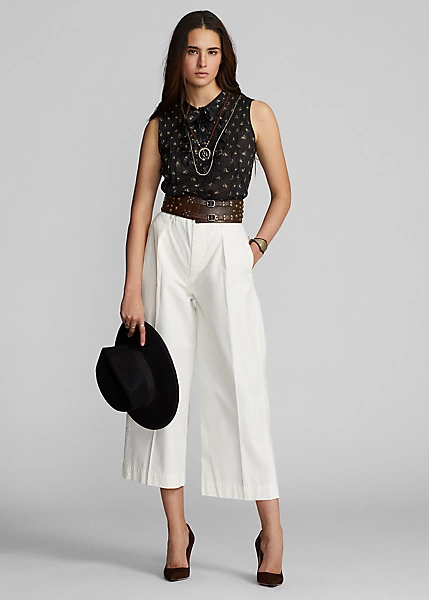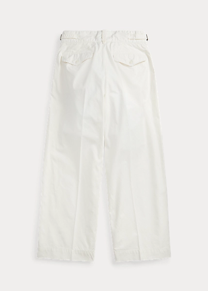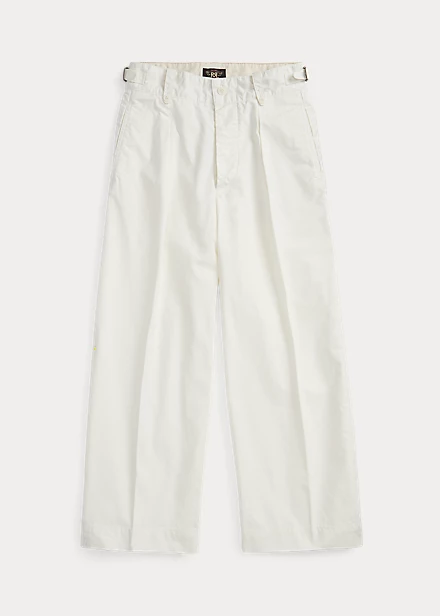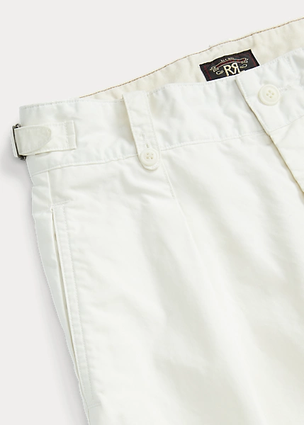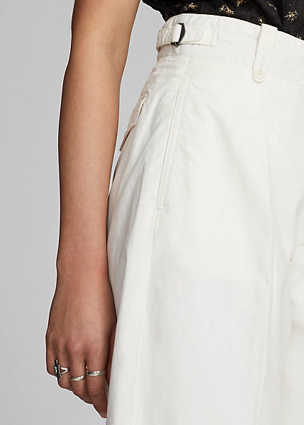 Pantalon 7/8 confectionné en popeline de coton. Modèle inspiré des pantalons des années 1940. Plis cousus sur le devant. Passants de ceinture boutonnés. Pattes à boucle réglables sur la taille. Sanforisé® pour minimiser le rétrécissement.