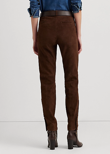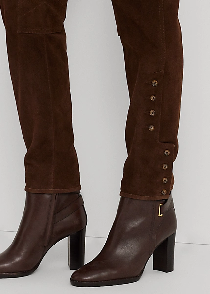 Arborant une taille haute flatteuse et une coupe droite épurée, ce pantalon 7/8 est soigneusement confectionné en chèvre velours stretch. Des renforts de genou et des boutons façon corne distinctifs sur les poignets subliment sa somptueuse allure.