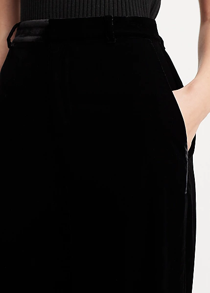 Arborant une taille haute flatteuse, ce pantalon large est confectionné en velours luxueux au toucher doux et à l’éclat subtil.