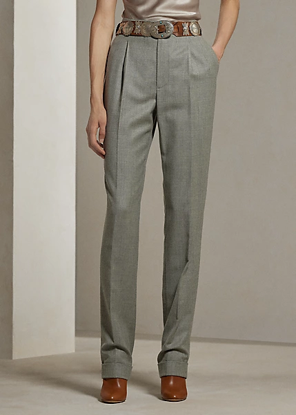 Arborant une coupe slim, le pantalon Jaena de la nouvelle saison est inspiré des pantalons pour hommes traditionnels, comme en témoigne son design chic et soigné. Avec une taille haute discrète, ce pantalon est rehaussé de plis impeccables sur les jambes, de pinces sur la taille, d’ourlets à revers et d’une taille allongée avec une fermeture à agrafe. Sa somptueuse flanelle est confectionnée à partir d’une combinaison de fils de laine peignée ultra-fins et de fils métallisés pour un élégant look scintillant.