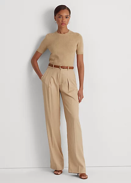 Pantalon à Pinces Jambe Large En Sergé
