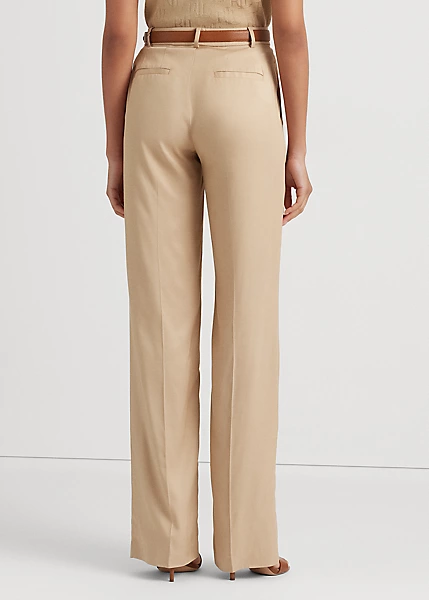 Arborant une taille haute flatteuse, ce pantalon ajusté est confectionné en sergé léger avec une touche de stretch. Des pinces impeccables rehaussent sa silhouette fluide à jambe large pour un effet allongeant.