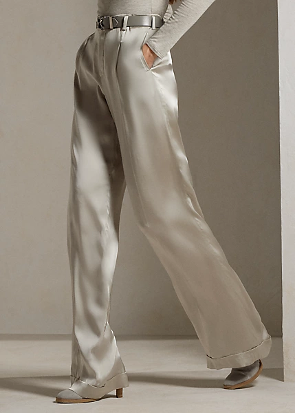 Version Ă jambe plus large de notre emblĂ©matique pantalon Stamford, le modèle Acklie arbore des pinces devant et des plis impeccables sur les jambes. La version de cette saison est confectionnĂ©e en Italie dans un satin stretch sĂ©lectionnĂ© pour son toucher doux et son drapĂ© remarquable. RehaussĂ©e d’une petite boucle carrĂ©e, une ceinture assortie souligne la taille, tandis qu’une taille haute Ă©voque une esthĂ©tique affirmĂ©e.