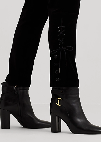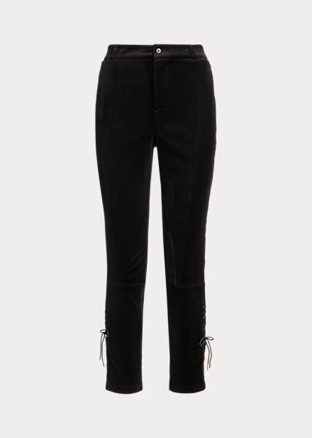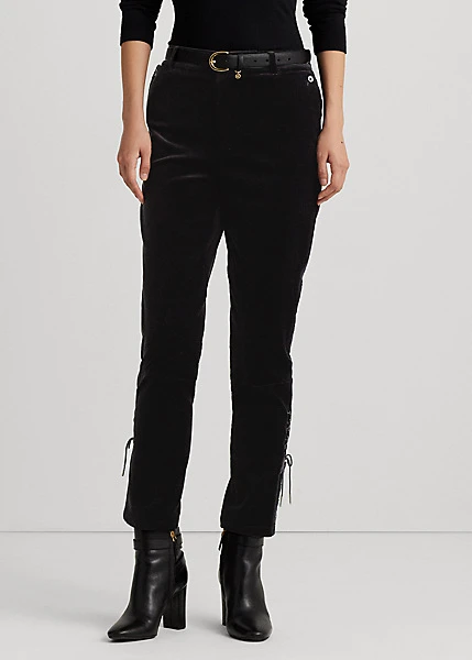 Confectionné dans un somptueux velours stretch, ce pantalon jodhpur slim arbore une silhouette taille haute raffinée. Ses renforts de genou illustrent l’ADN iconique d’inspiration équestre de Ralph Lauren, tandis que ses lacets lui confèrent une touche subtile.