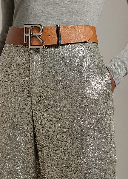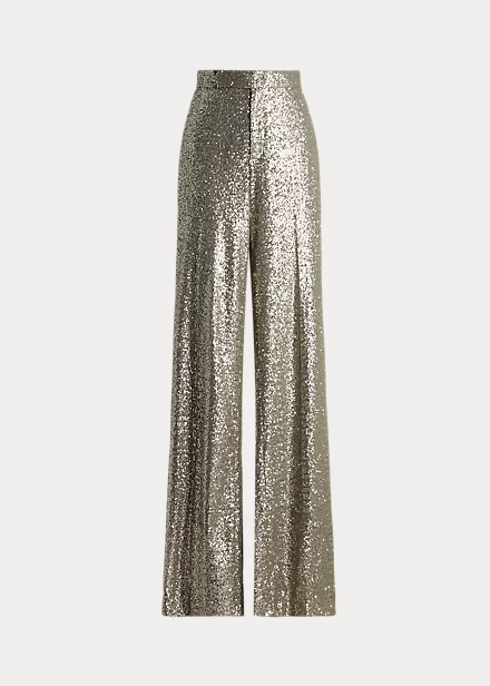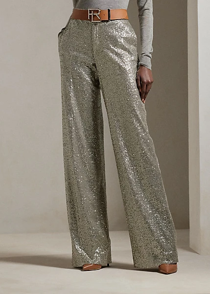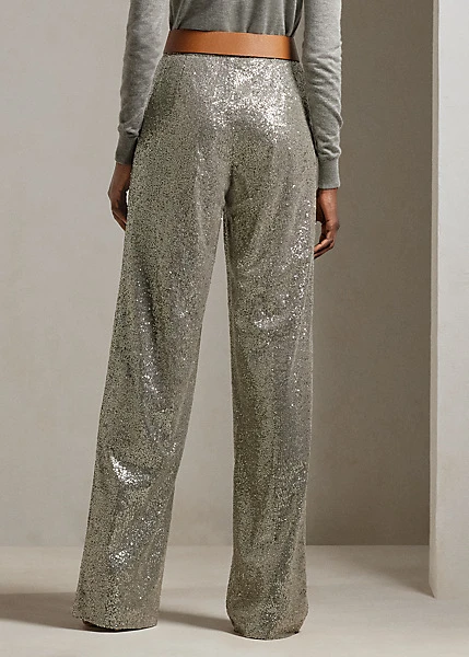 Nouveauté de la nouvelle saison, le modèle Welles revisite le pantalon sans pinces avec la touche luxueuse de Ralph Lauren Collection. Dotée d’une taille mi-haute et d’une silhouette large, cette pièce se distingue par sa confection en sequins étincelants, qui s’intègre à l’élégante palette de tons gris de la saison.