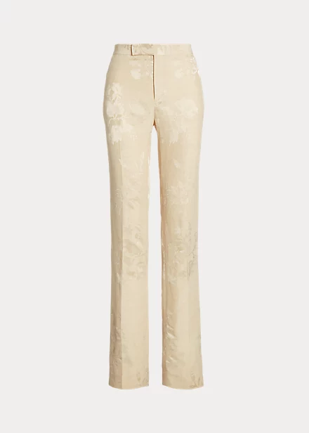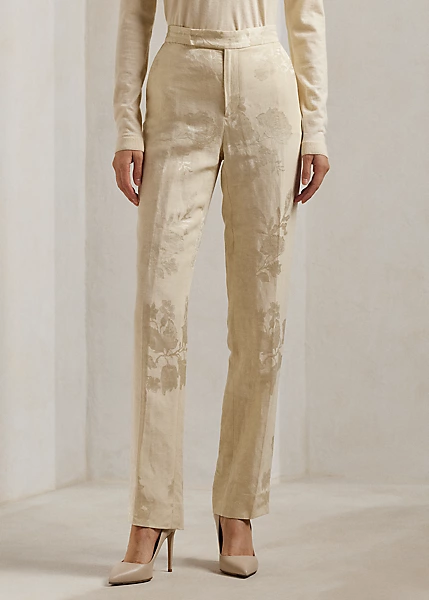InspirĂ© des pantalons pour hommes classiques, le modèle Seth associe des Ă©lĂ©ments intemporels (notamment une patte allongĂ©e sur la taille, des plis sur les jambes et des pinces Ă l’arrière de la taille) au jacquard fleuri mat et scintillant de la saison pour un look romantique et raffinĂ©.