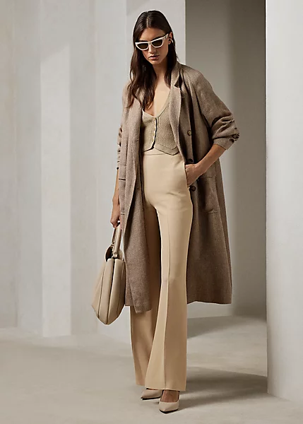 Incontournable de la nouvelle saison, le pantalon Chevonne arbore une taille mi-haute et une coupe large discrète, ce qui lui confère un charme nonchalant. Orné de plis impeccables, ce modèle sans pinces est doté de poches latérales passepoilées, d’une fermeture boutonnée sur la taille et d’une confection en sergé de cavalerie raffinée, idéale pour obtenir le bon équilibre entre une texture intéressante et un drapé léger élégant.