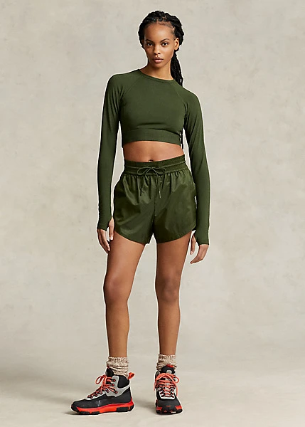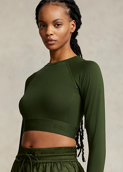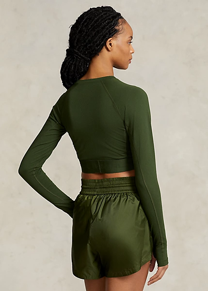 Confectionné en jersey velours, ce pull court possède des propriétés respirantes et stretch raffinées pour vous garder au frais, au sec et à l’aise. Cette pièce est parachevée d’ouvertures pour les pouces aux poignets et d’une taille élastique ton sur ton ornée de notre logo « RLX » répétitif.