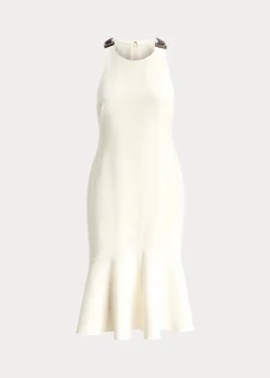 Dotée d’une bordure volantée, d’une jupe gitane et d’un laçage sur l’encolure, cette robe incarne naturellement le charme romantique. Confectionnée en jersey de lin mélangé léger pour plus de douceur, elle arbore l’un des motifs de la saison inspirés de techniques ancestrales de tissage.