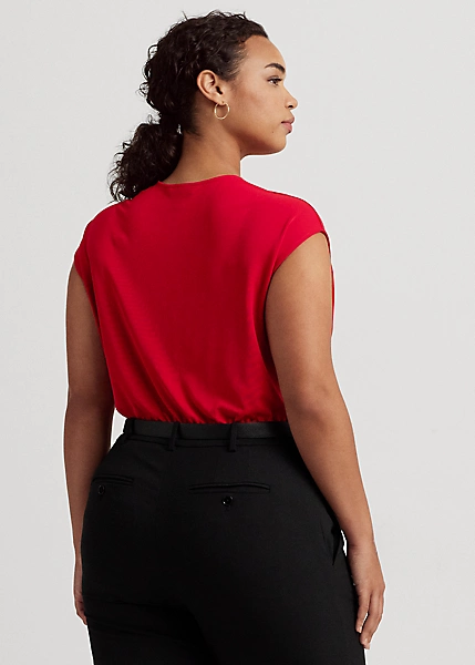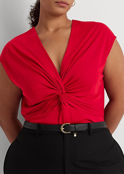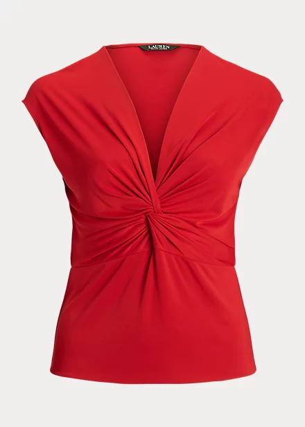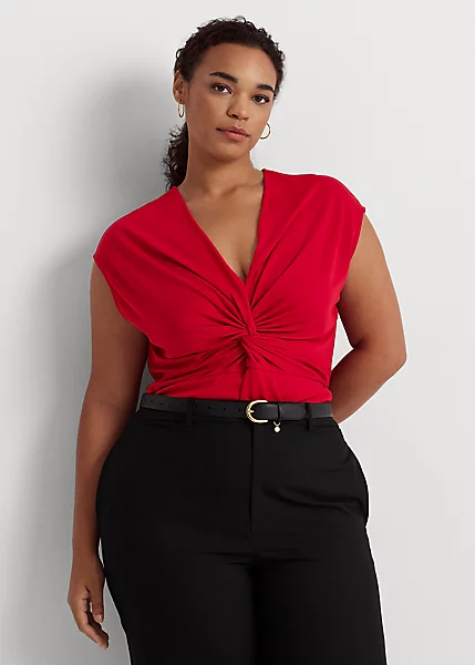 Confectionnée en jersey stretch doux, cette version raffinée du t-shirt essentiel se caractérise par des mancherons et un devant torsadé.